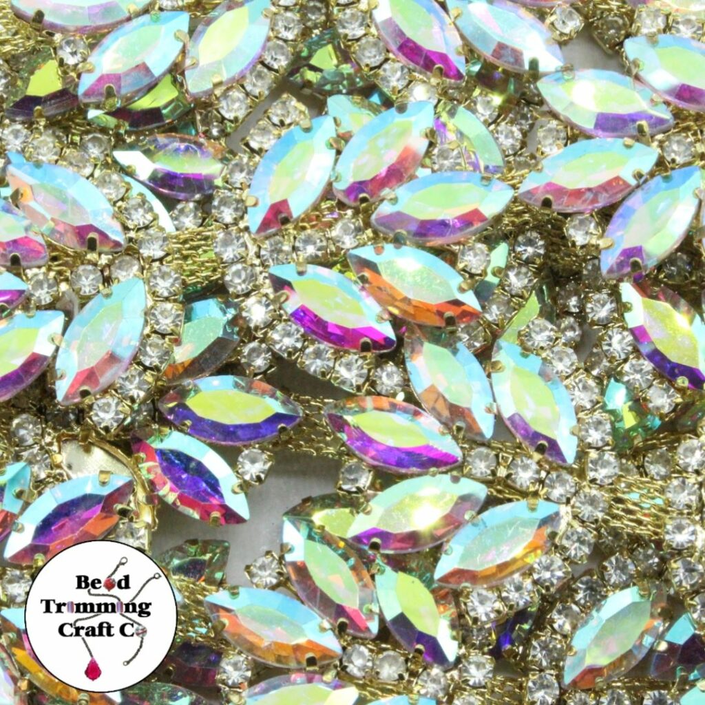 Crystal Trimming – 35mm – AB / Crystal / Gold – Price per centimeter.