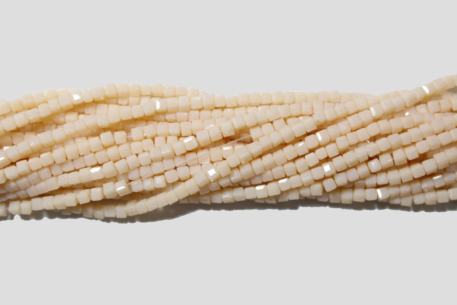 Cube – 3mm – Cream – 48cm Strand. Glass Bead.