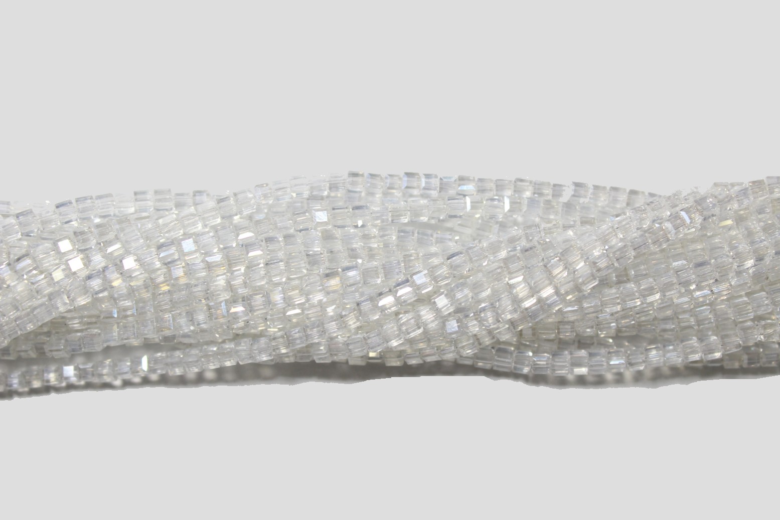 Cube – 3mm – Crystal – 48cm Strand. Glass Bead.