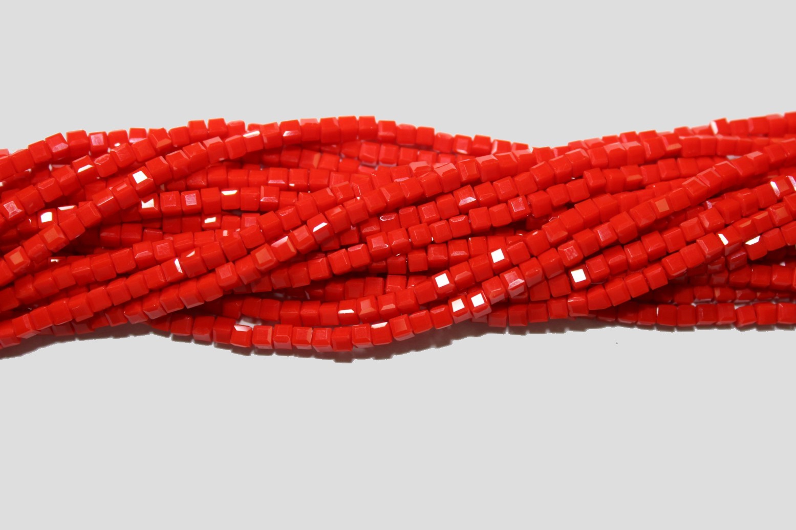 Cube – 3mm – Red – 48cm Strand. Glass Bead.