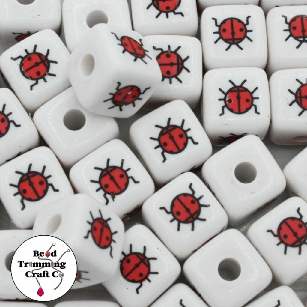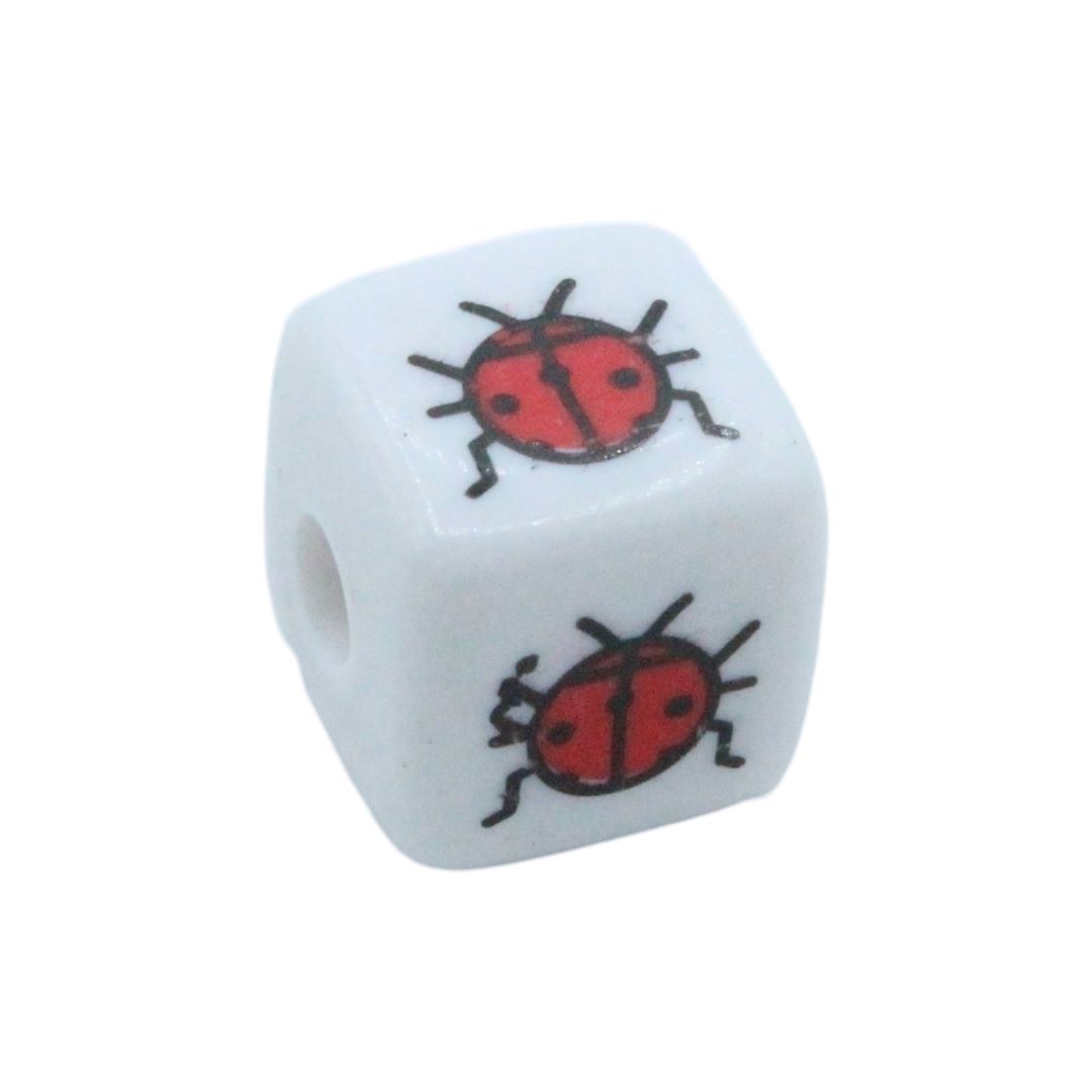 Cube Bead – Beetle – 12mm – White.