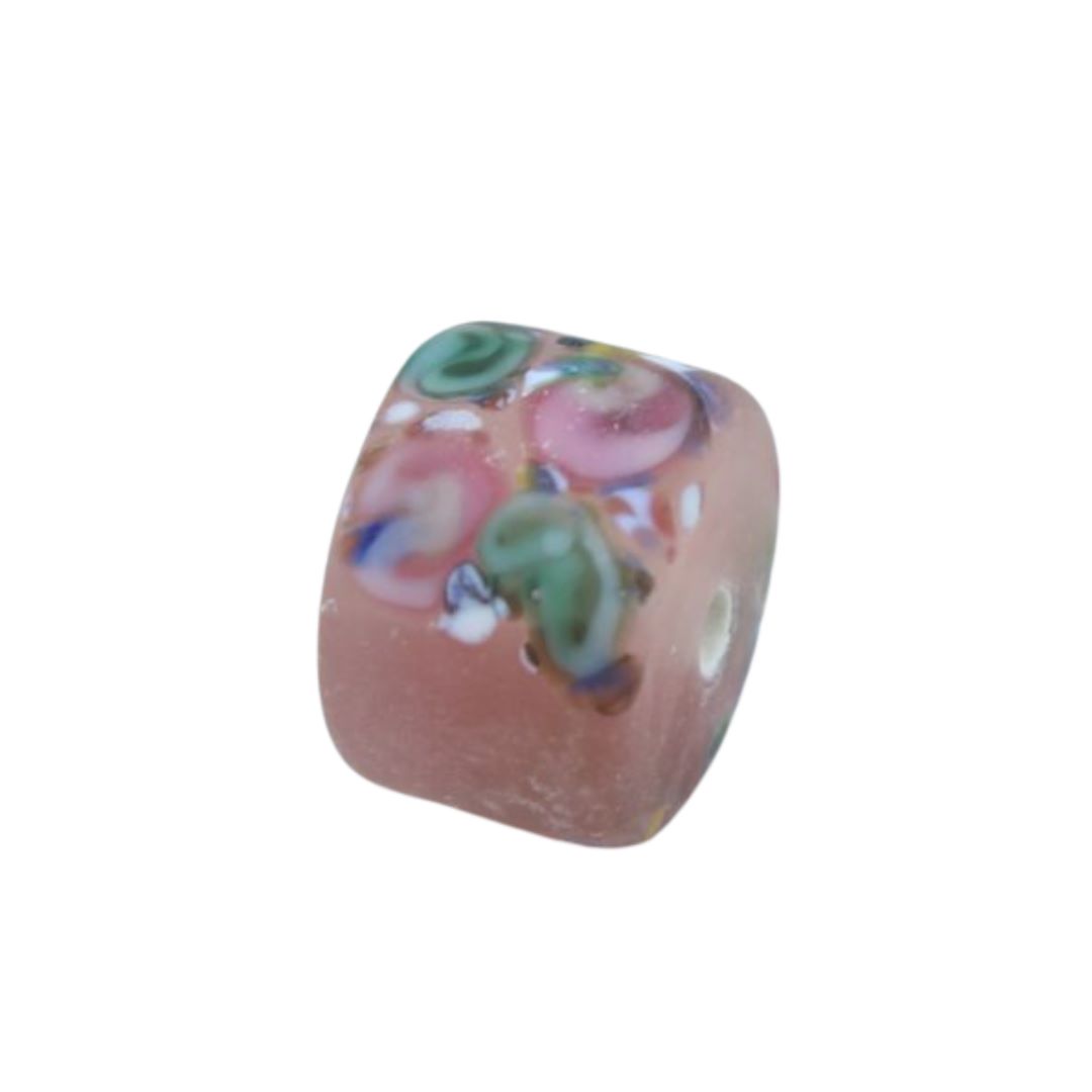 Czech Frosted Floral Barrel – 11mm – Pink.