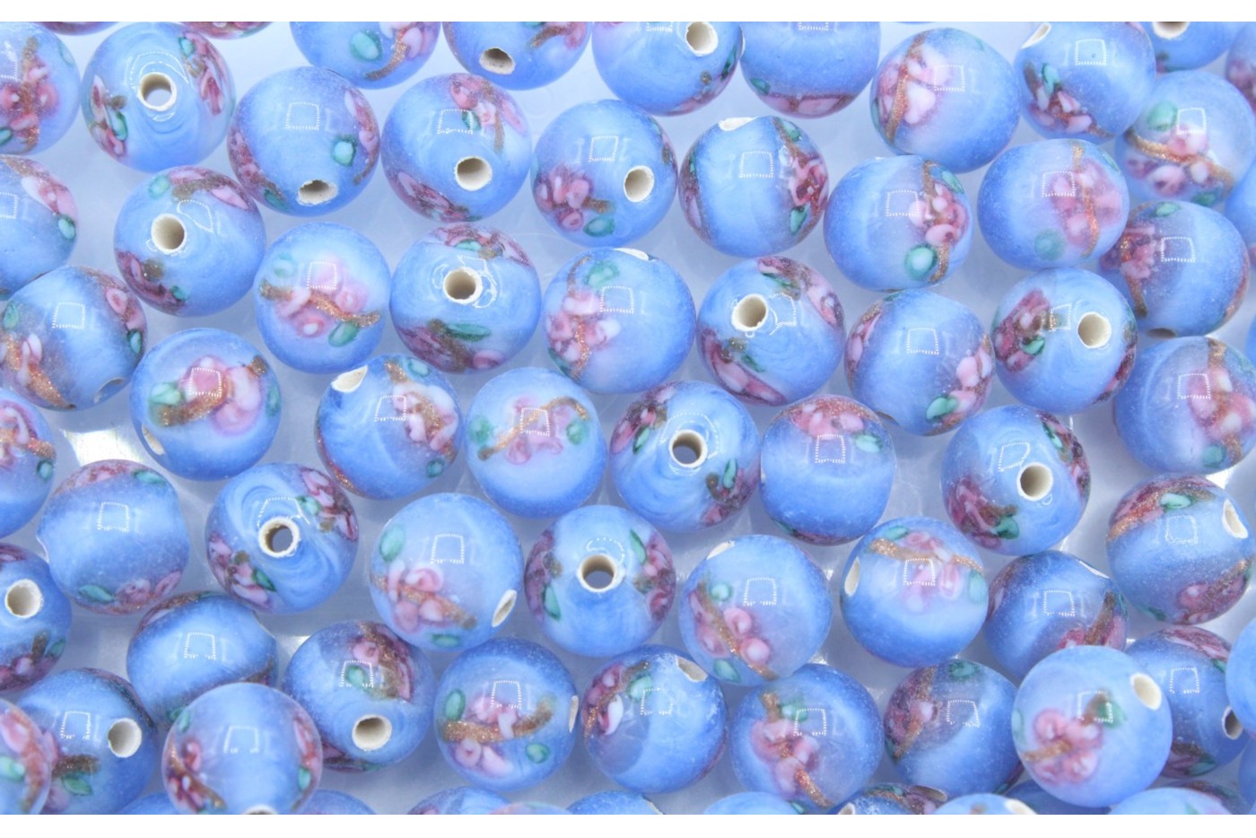 Czech Lampwork – 12mm Rose Bead – Blue. Made in the Czech Republic. Glass Bead. ‘A’ quality.