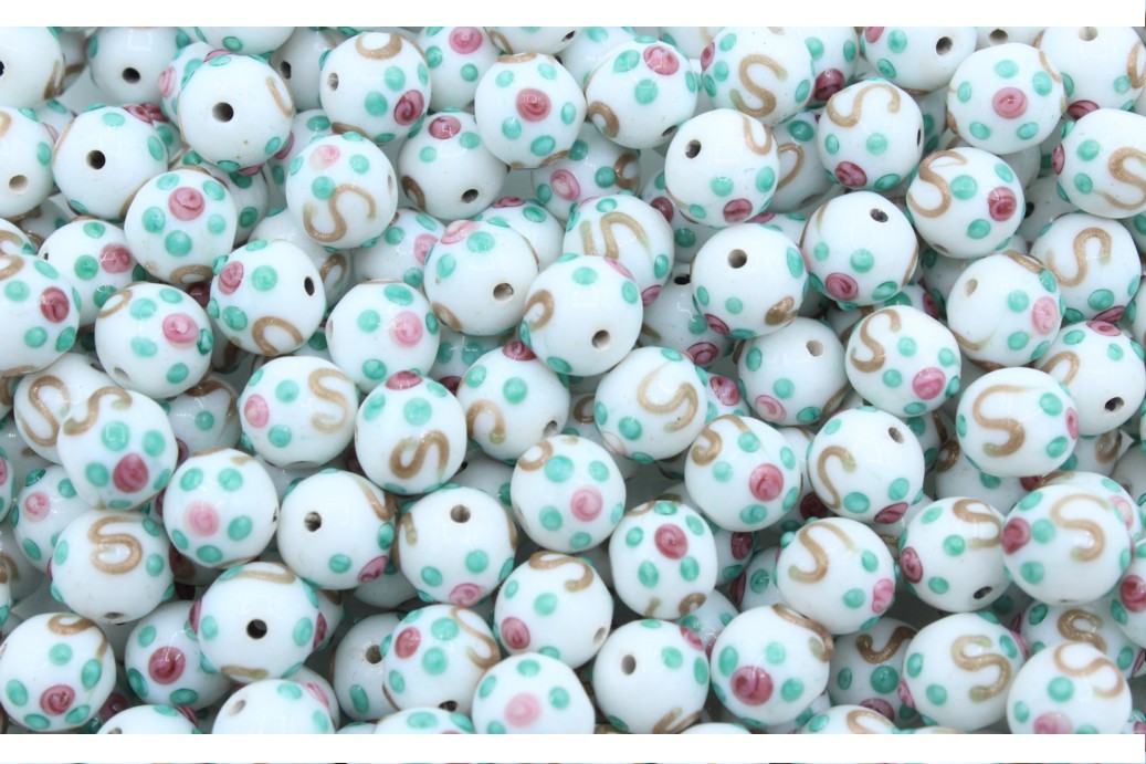 Czech Lampwork – 8mm Measle Bead – White. Made in the Czech Republic. Glass Bead. ‘A’ quality.