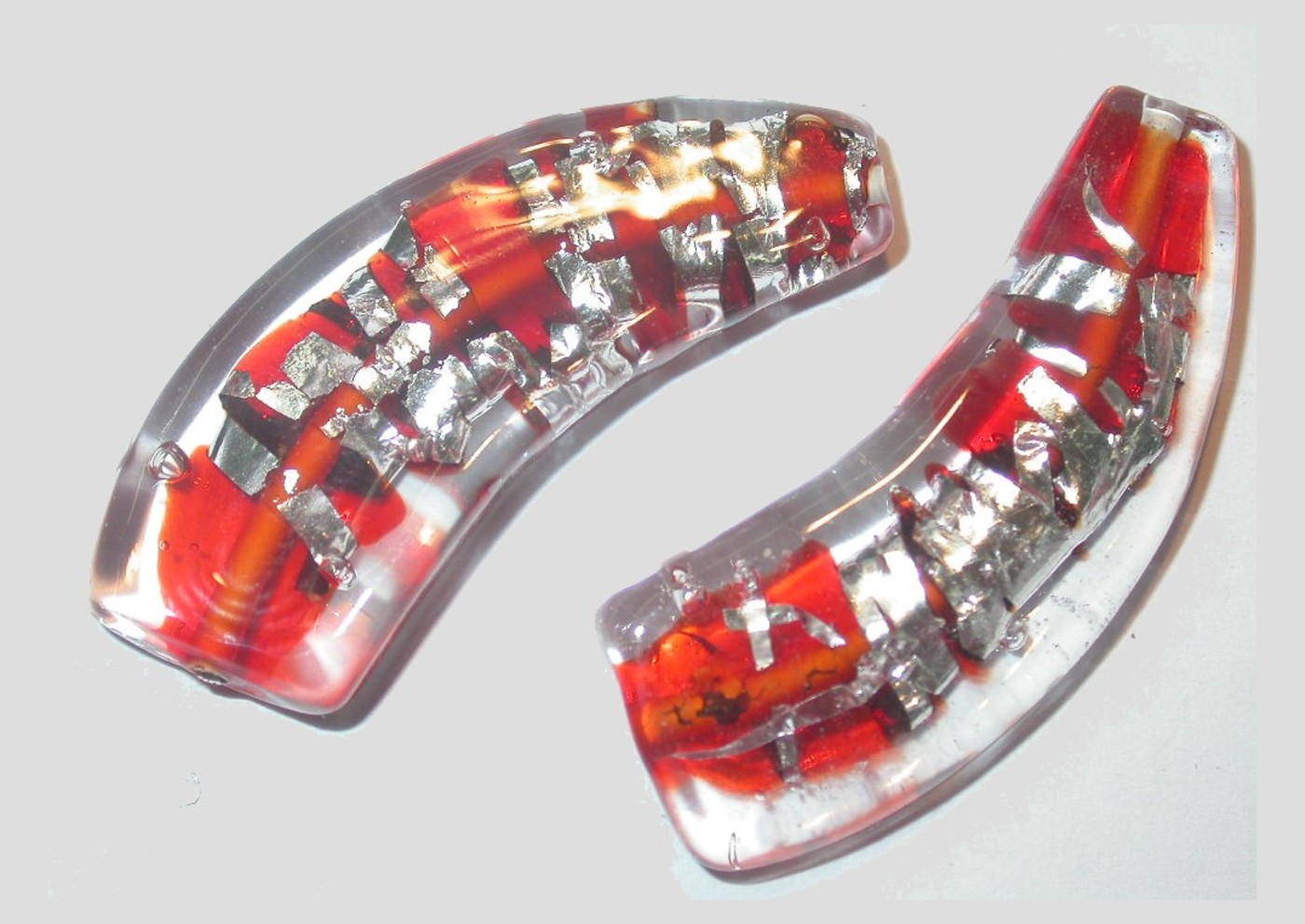 Czech Lampwork Foil – 37 x 15mm. Czech Made. Excellent quality. Glass bead. Silver foil flat glass bead.