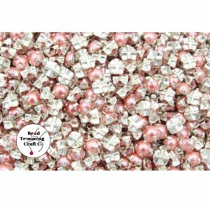 Czech Rosemonte Pearl – Round – 4mm – Silver / Rose Peach.