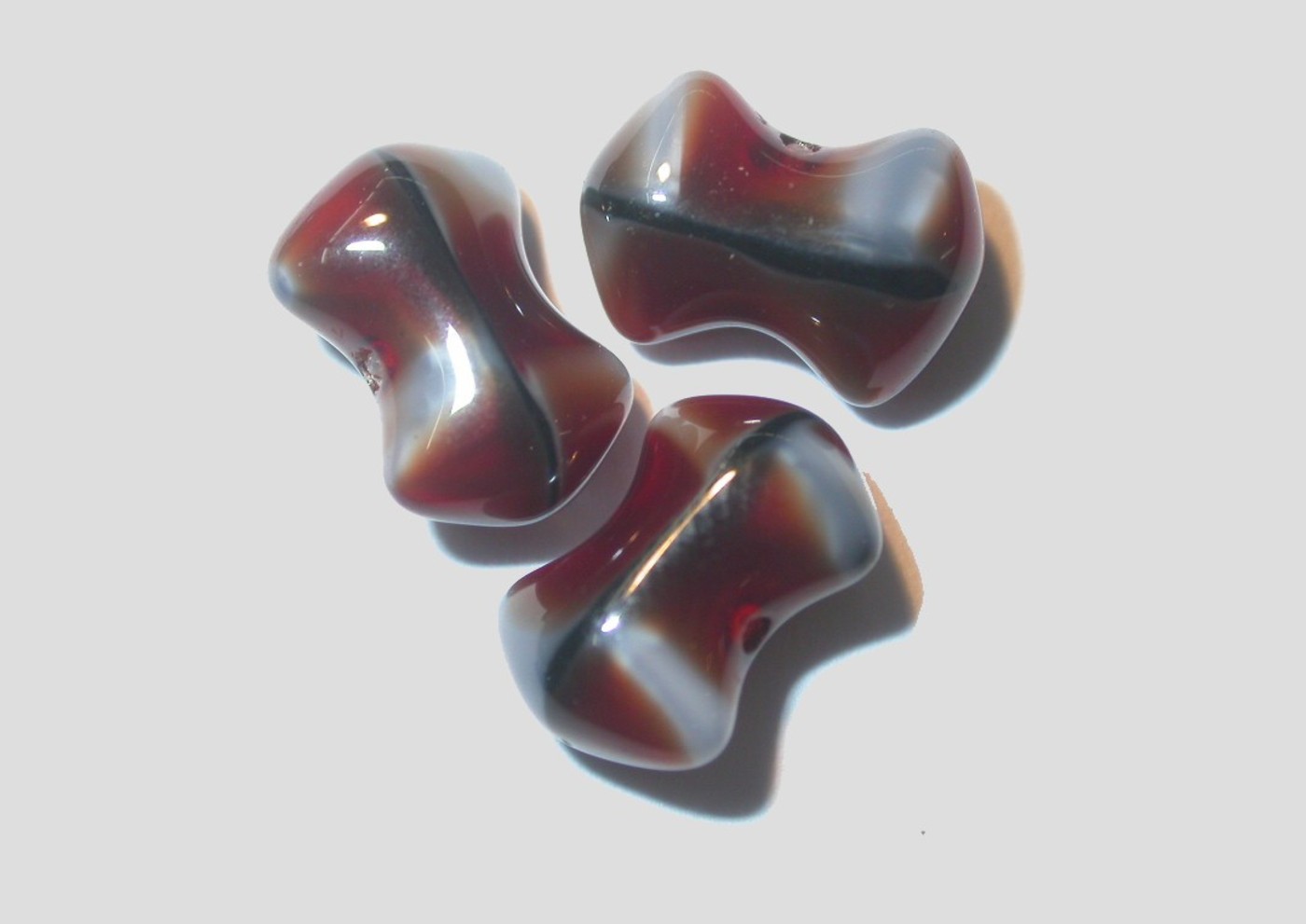 Beads link in a pettern when threaded side by side.