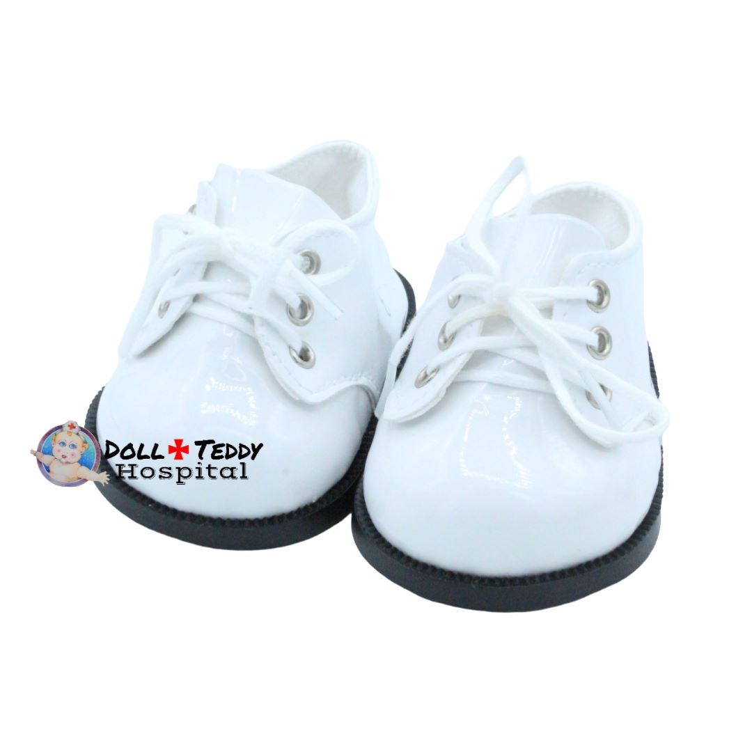 Doll Shoes. White Vinyl / Black Sole / Laces. Price per pair.