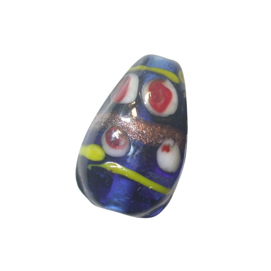 Drop – 23 x 13mm – Dark Blue. Glass bead. Approx 23 x 13mm. Hand painted. Top to bottom drilled hole.