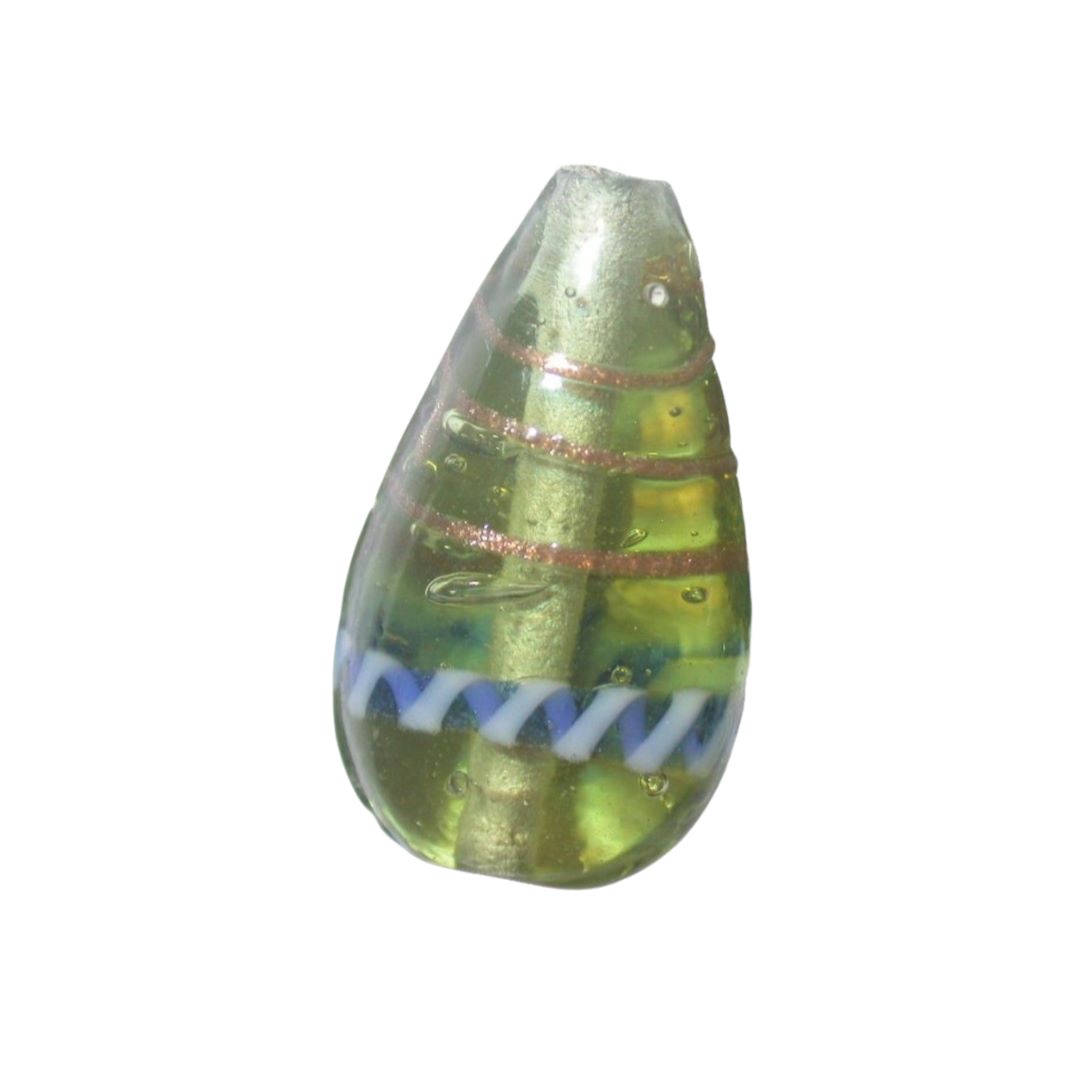 Drop – 23 x 13mm – Olive. Glass bead. Approx 23 x 13mm. Hand painted. Top to bottom drilled hole.