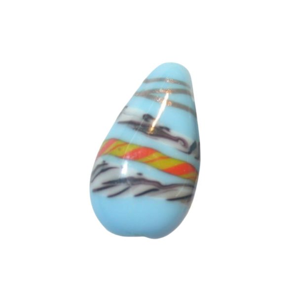 Drop – 23 x 13mm – Turquoise. Glass bead. Approx 23 x 13mm. Hand painted. Top to bottom drilled hole.
