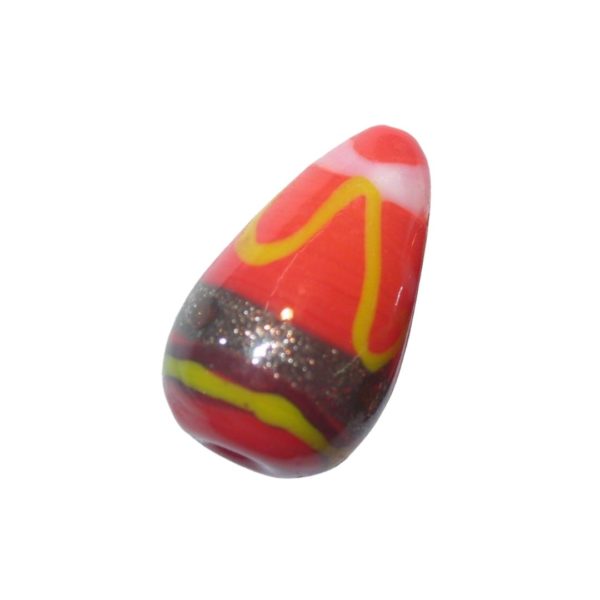 Drop – 23 x 14mm – Orange. Glass bead. Approx 23 x 14mm. Hand painted. Top to bottom drilled hole.