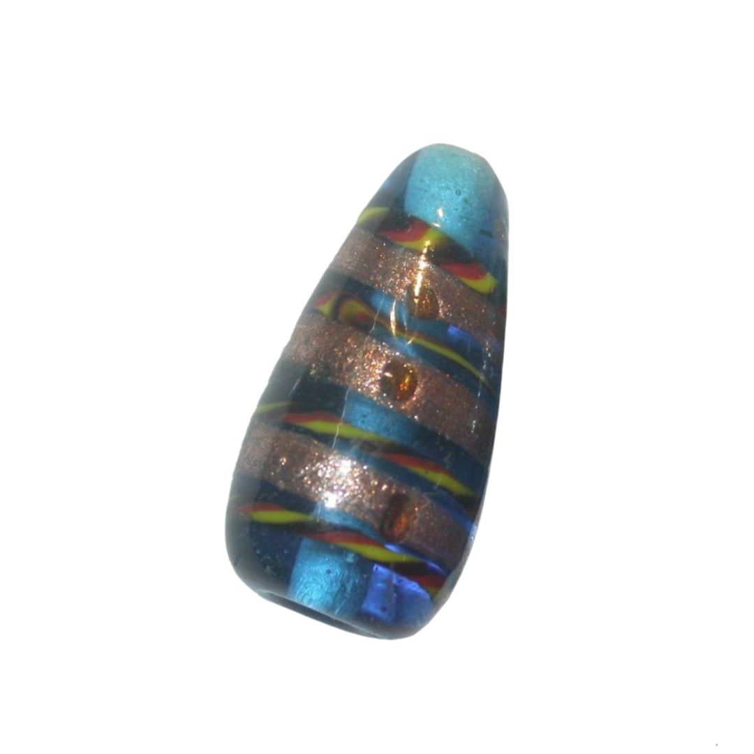Drop – 27 x 12mm – Blue. Glass bead. Approx 27 x 12mm. Hand painted. Top to bottom drilled hole.