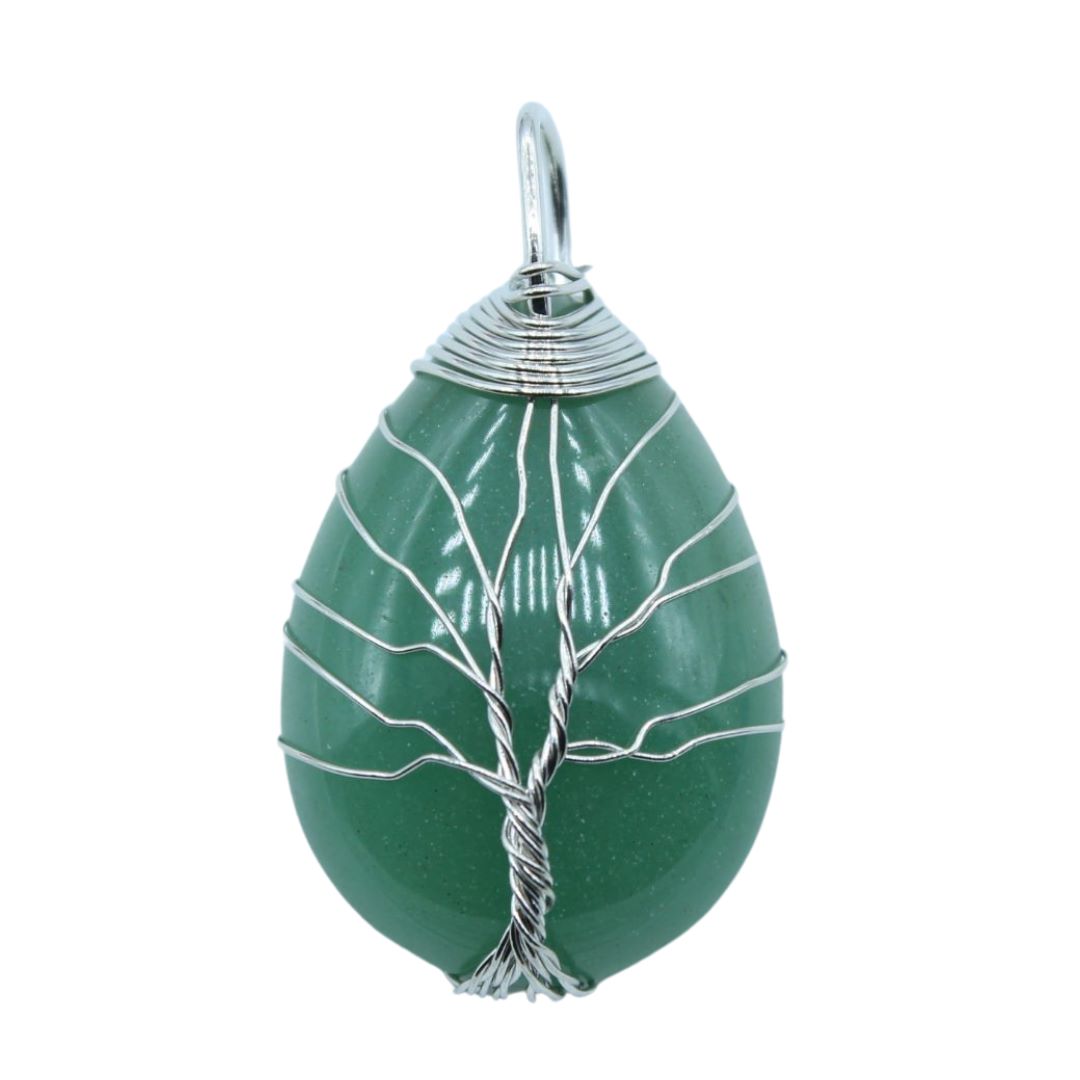 Drop Pendant / Tree Of Life / Aventurine – 35mm. 35 x 25mm Drop pendant size. Antique Silver wire colour pendant.
