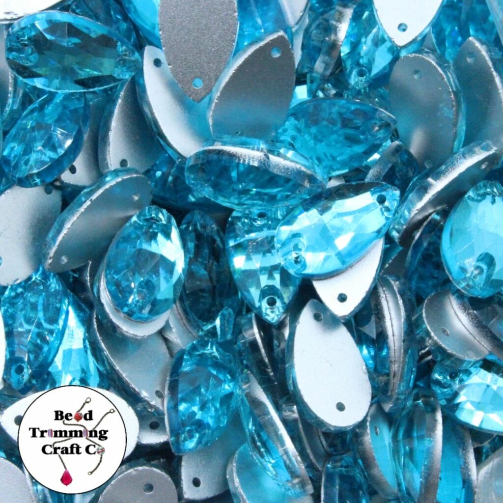 Drop – Sew On – 18 x 11mm – Aqua F – ECO Range.