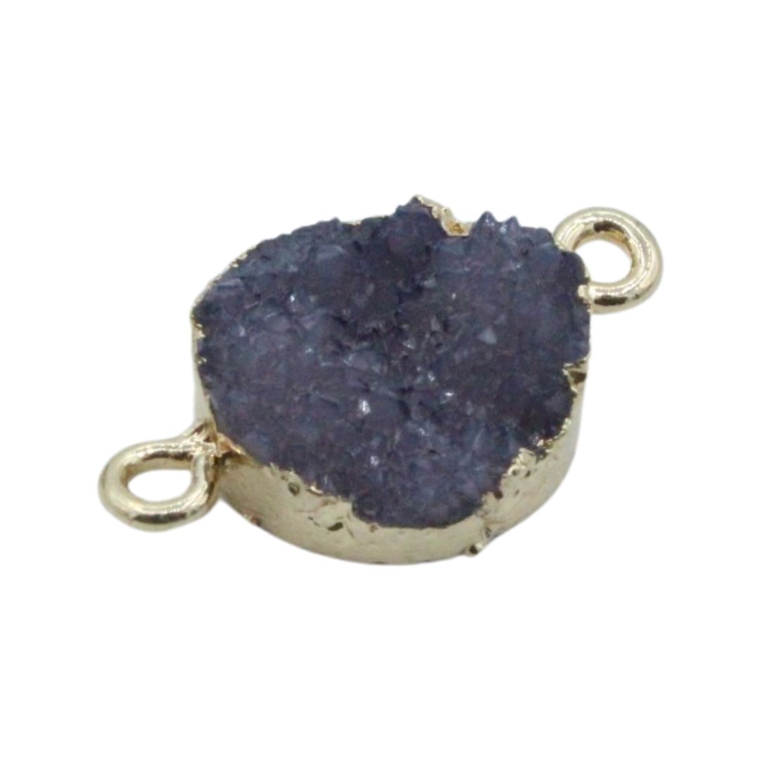 Druzy Coin / Joiner – 14mm – Resin – Faux Gold – Purple