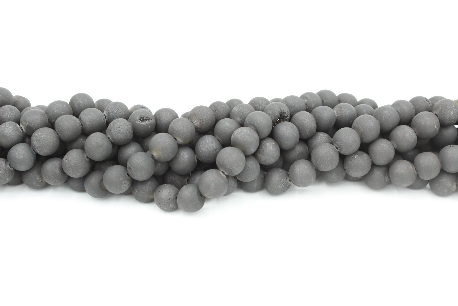 Druzy Crystal – 10mm Round – Black – 39cm Strand. 10mm bead size. Plated gemstone.