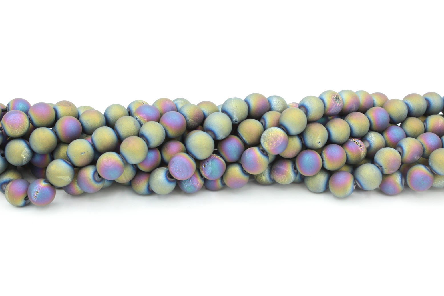Druzy Crystal – 10mm Round – Olive Iris – 39cm Strand. 10mm bead size. Plated gemstone.