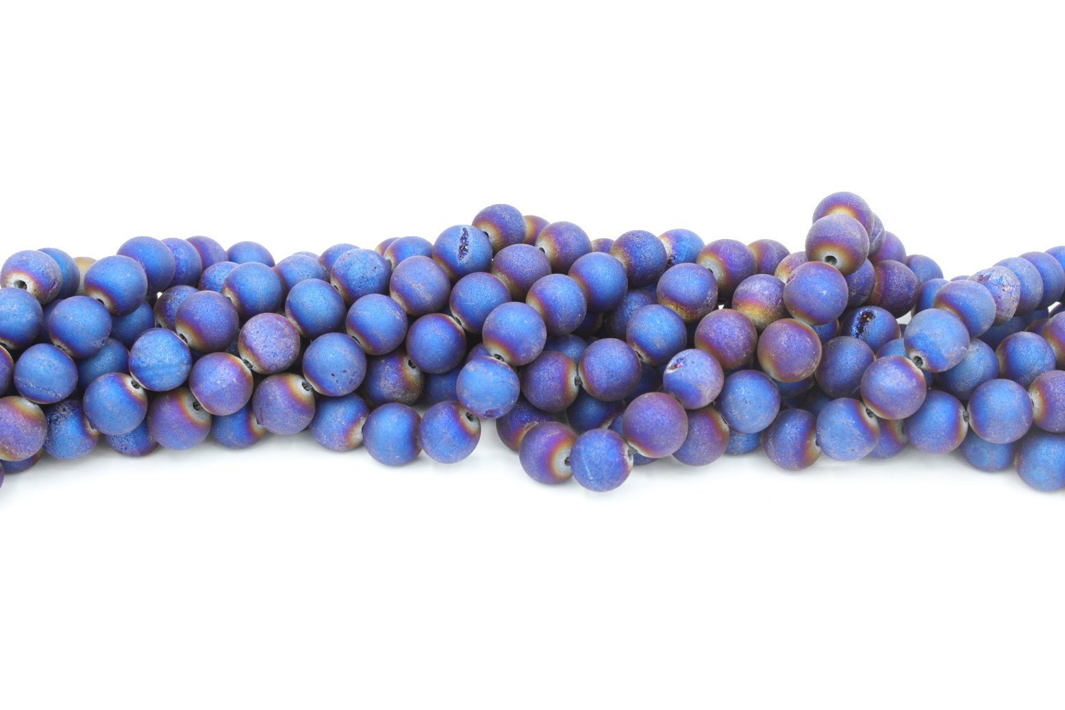Druzy Crystal – 10mm Round – Purple Iris – 39cm Strand. 10mm bead size. Plated gemstone.