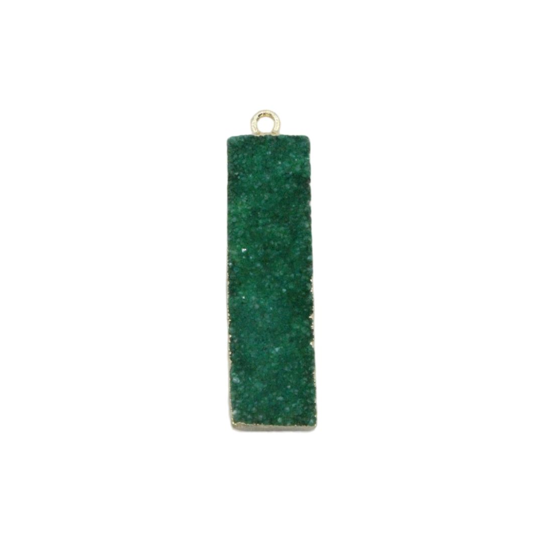 Druzy Crystal – Rectangle Pendant – 35mm – Green / Gold.