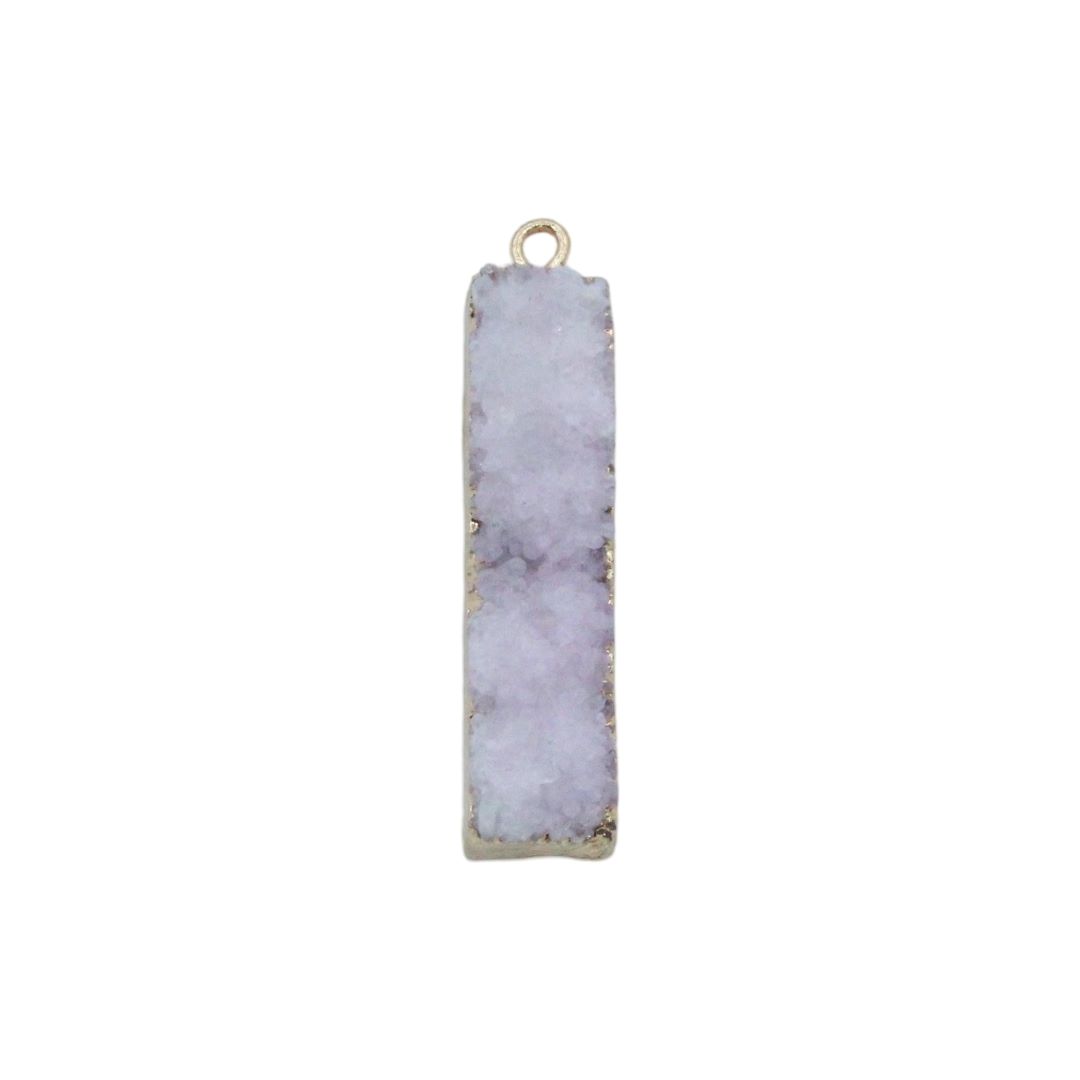 Druzy Crystal – Rectangle Pendant – 35mm – Light Pink / Gold.