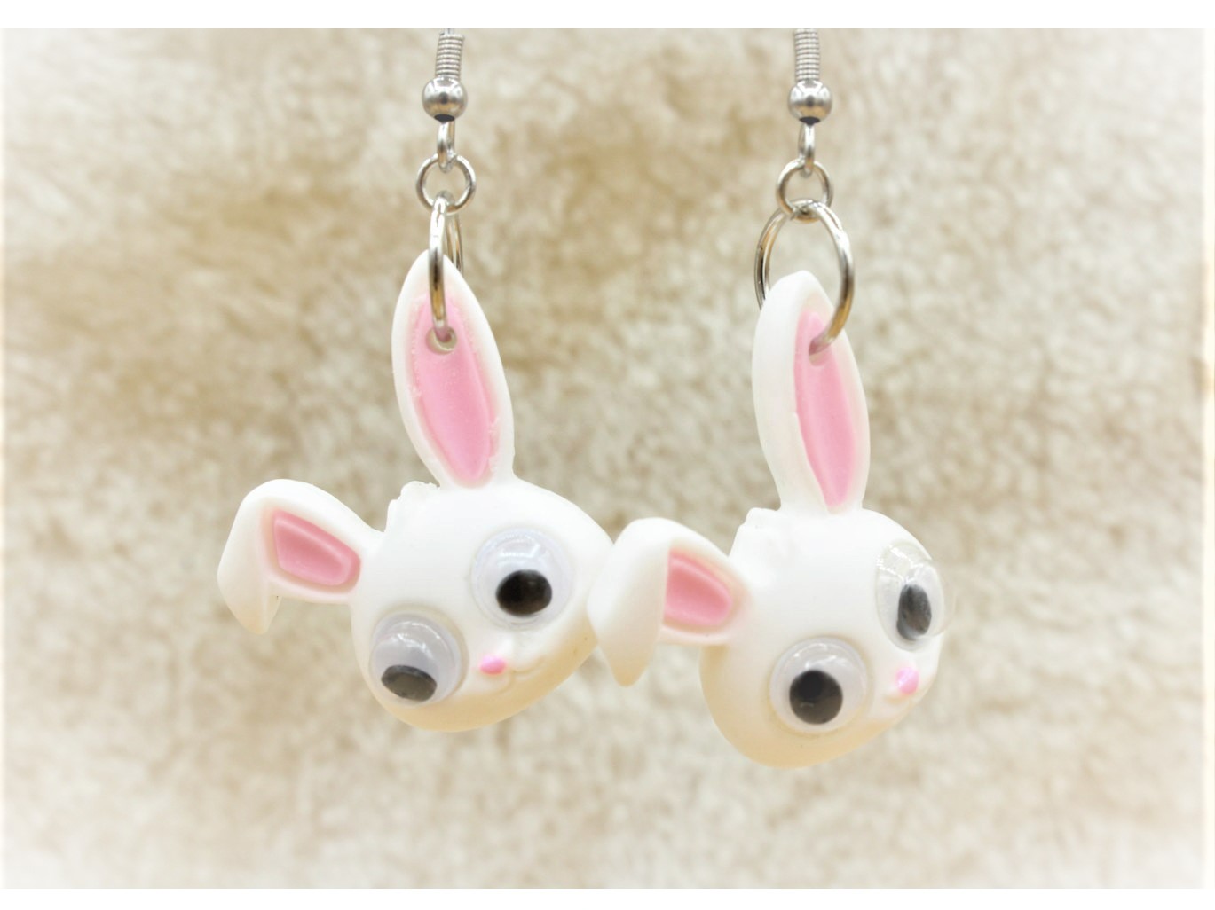 Easter Bunny Earrings – 34 x 26mm. Resin bunny with googly eyes. Size does not include earring components. Earrings on Stainless Steel Ear Hooks.