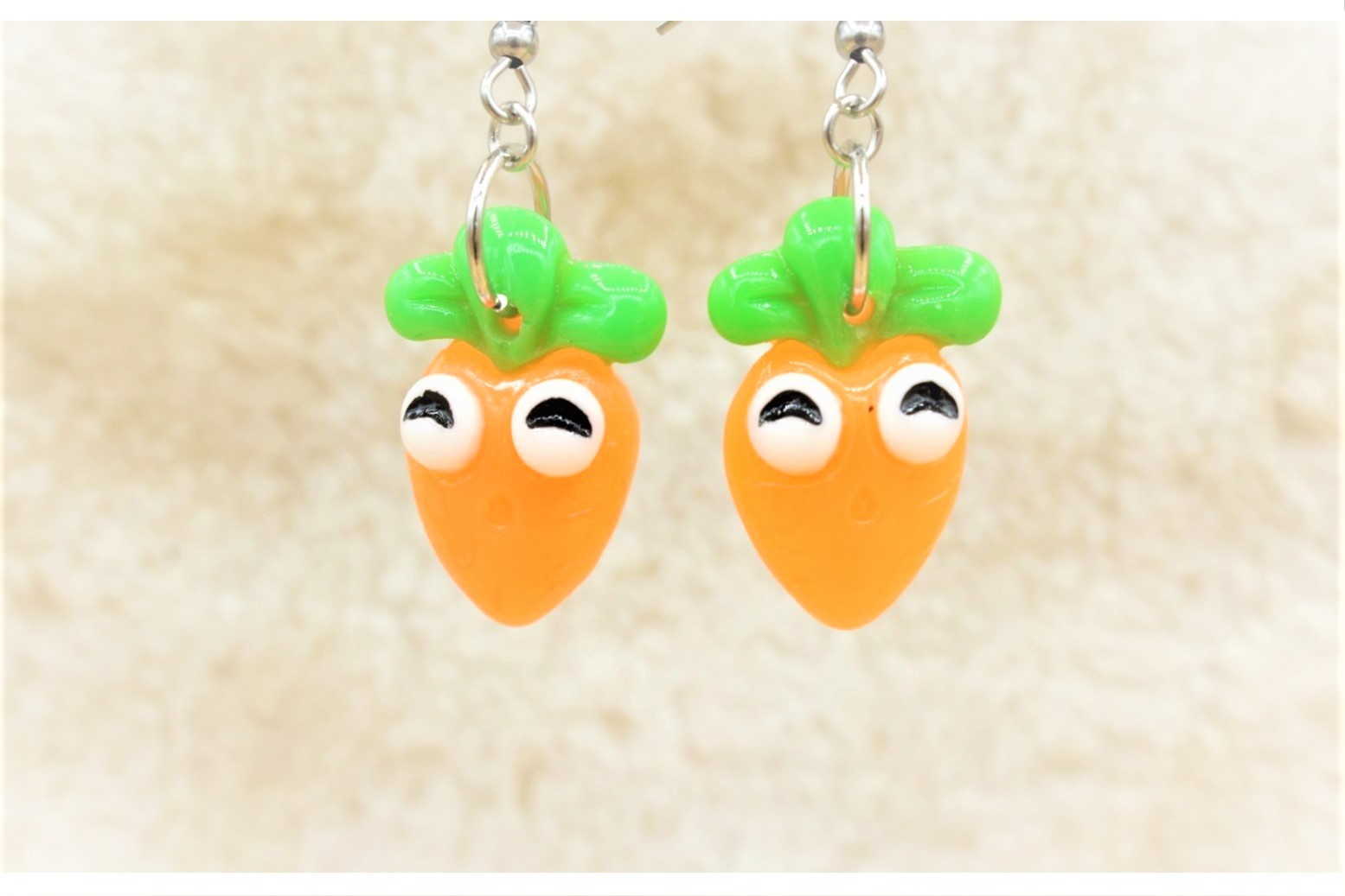 Easter Carrot Earrings – 25 x 16mm. Plastic carrot. Size does not include earring components. Earrings on Stainless Steel Ear Hooks.