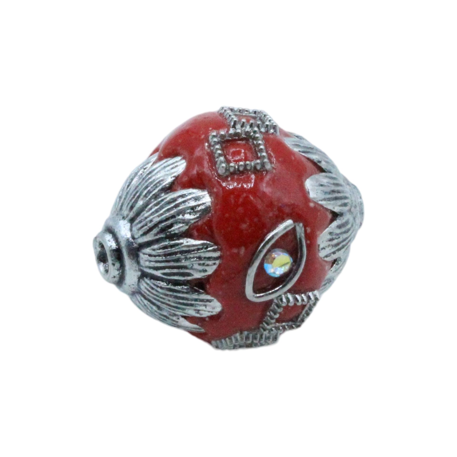 Embellished Bead – Oval – 20mm – Red / Silver.