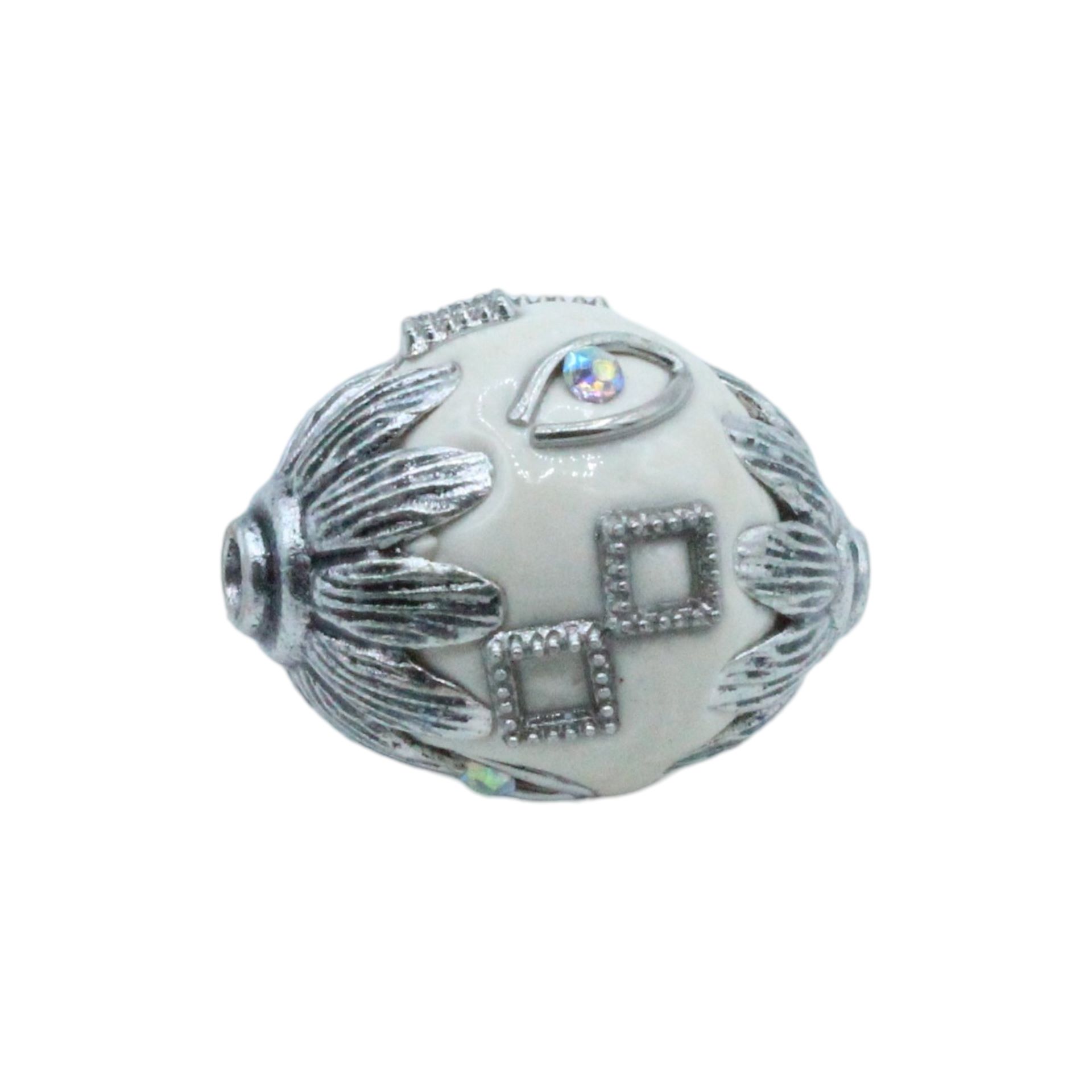 Embellished Bead – Oval – 20mm – White / Silver.