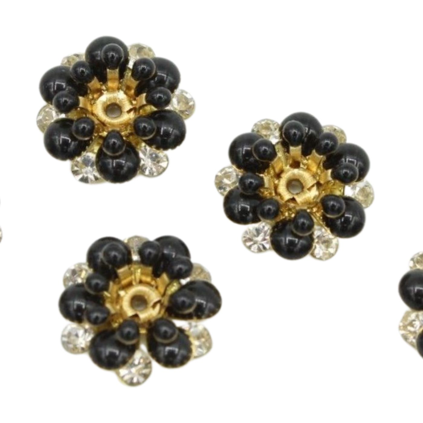 Enamel Flower – 11mm – 6 Petal / Crystal – Black. Copper Base with Resin coating.