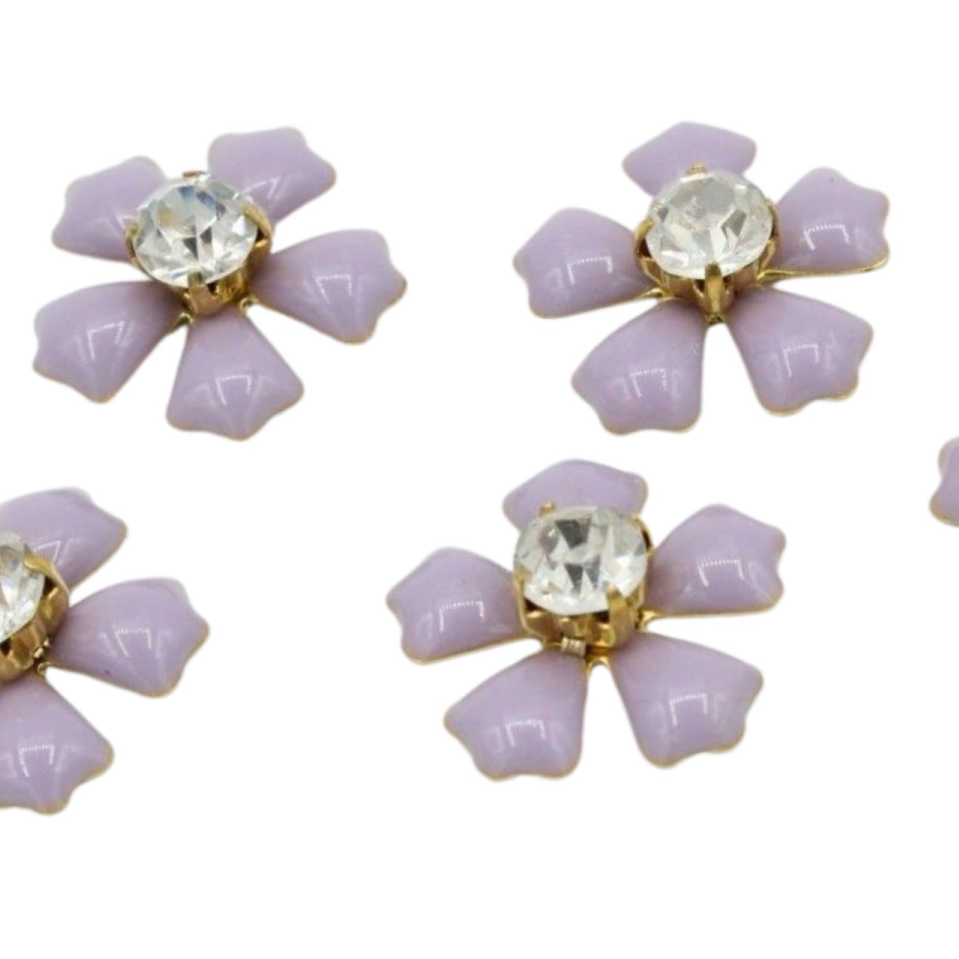 Enamel Flower – 15mm – 5 Petal / Crystal – Purple. Copper Base with Resin coating.