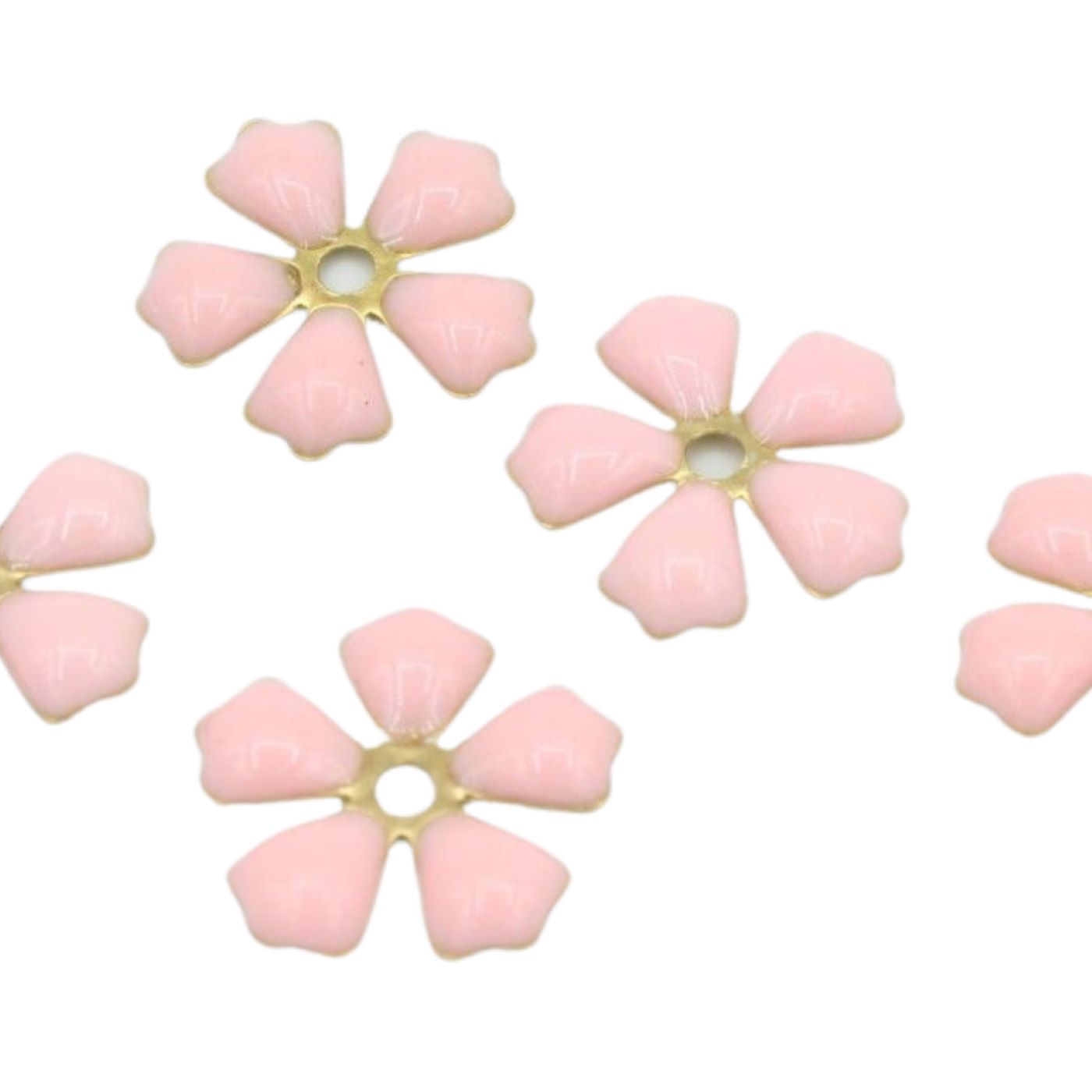 Enamel Flower – 15mm – 5 Petal – Pink. Copper Base with Resin coating.