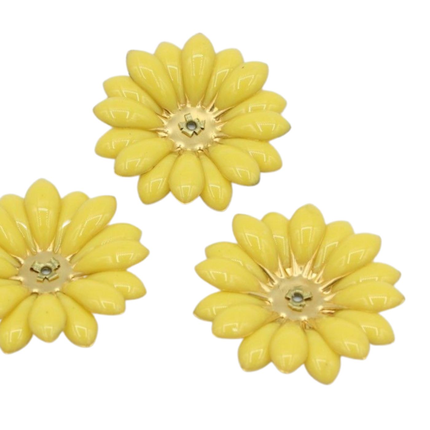 Enamel Flower – 30mm – Yellow. Copper Base with Resin coating.