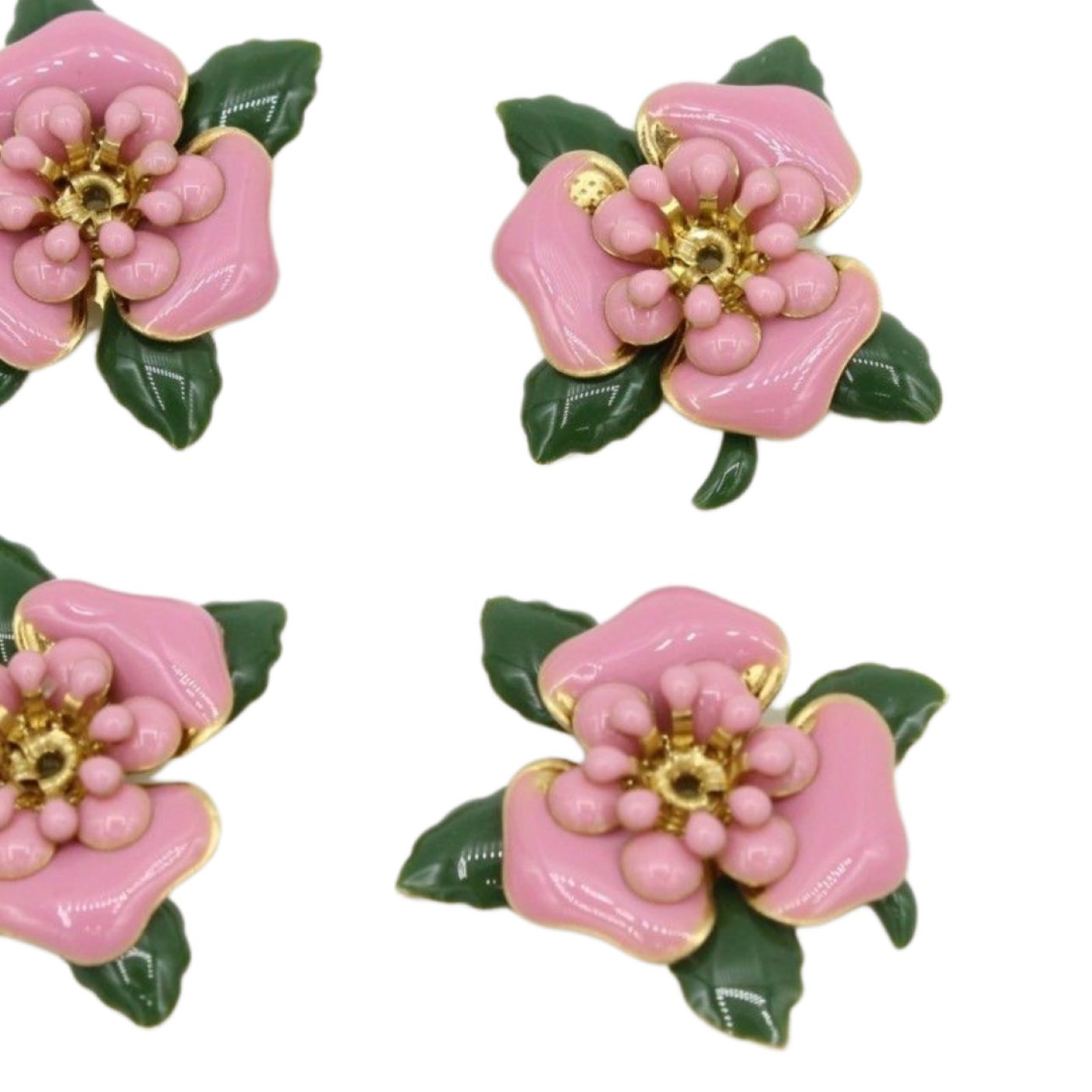 Enamel Flower / Leaf – 20mm – 3 Layer – Pink