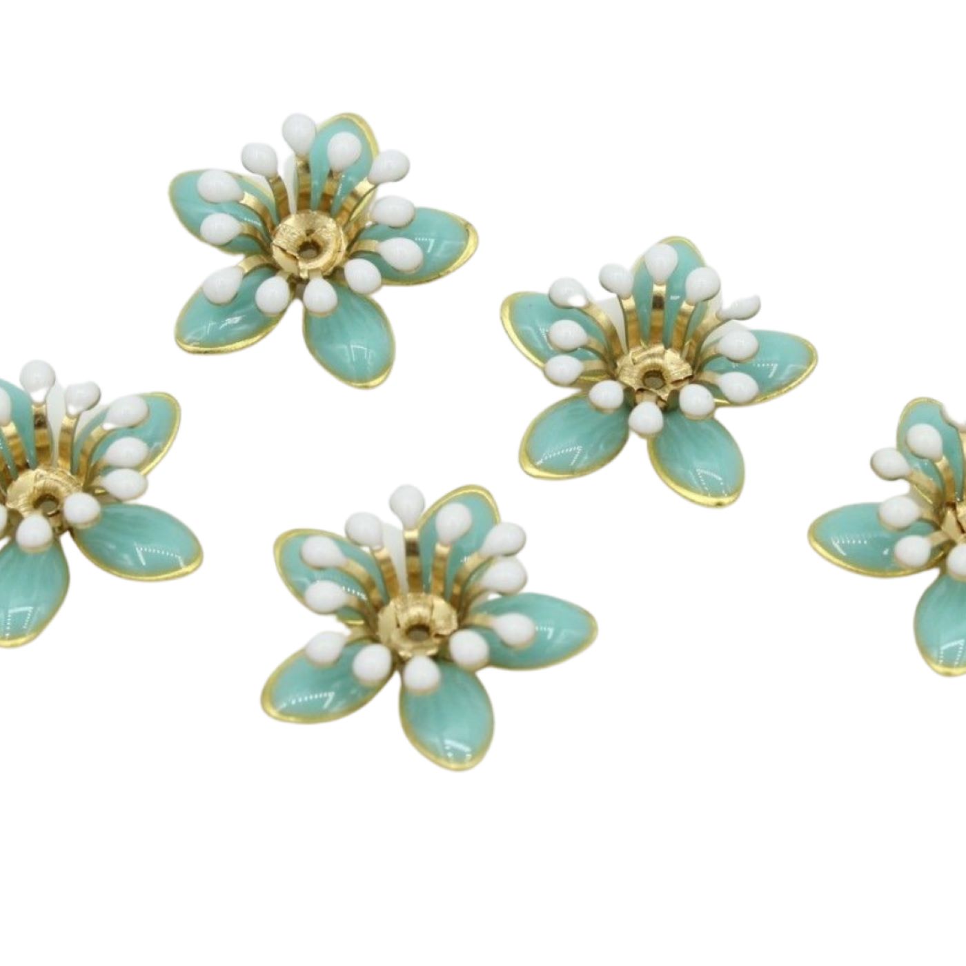 Enamel Flower / Stamen – 16mm – Blue. Copper Base with Resin coating.