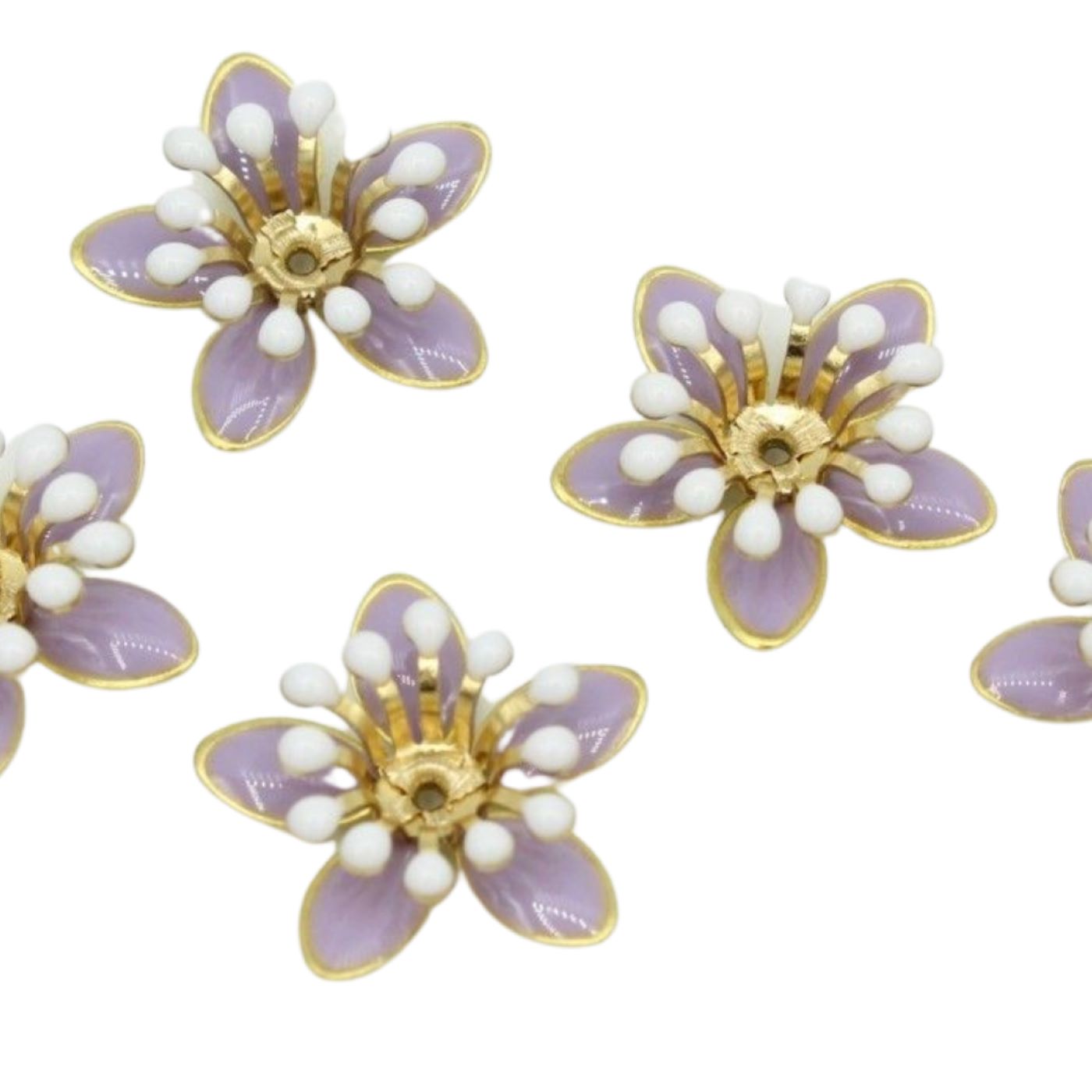 Enamel Flower / Stamen – 16mm – Purple. Copper Base with Resin coating.