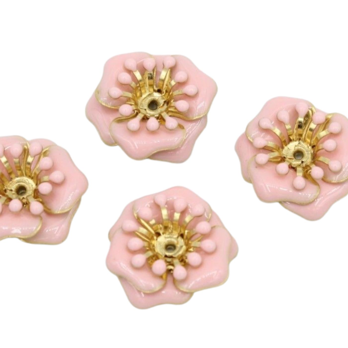 Enamel Flower / Stamen – 18mm – Pink. Copper Base with Resin coating.