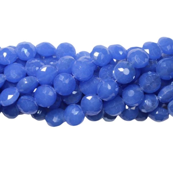 Faceted Coin – 14mm – Opaque Blue – 31cm Strand. 14mm bead size. Please contact us to purchase individual pieces.