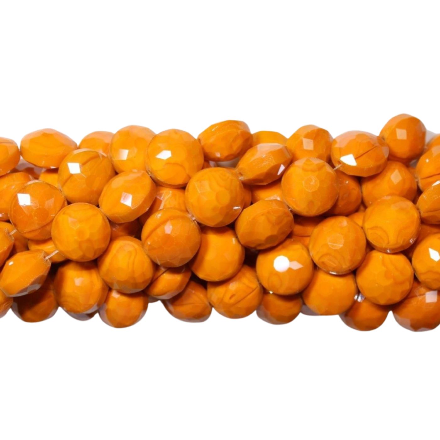 Faceted Coin – 14mm – Opaque Orange – 31cm Strand