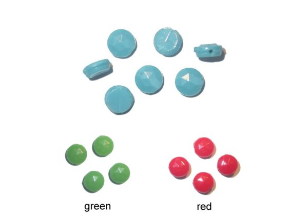 Faceted Coin – 5 x 3mm – Assorted Colours. Glass Bead. Made in the Czech republic. Hole drilled from side to side. Flat 1 side. Can mix colours to obatin quantity discount.