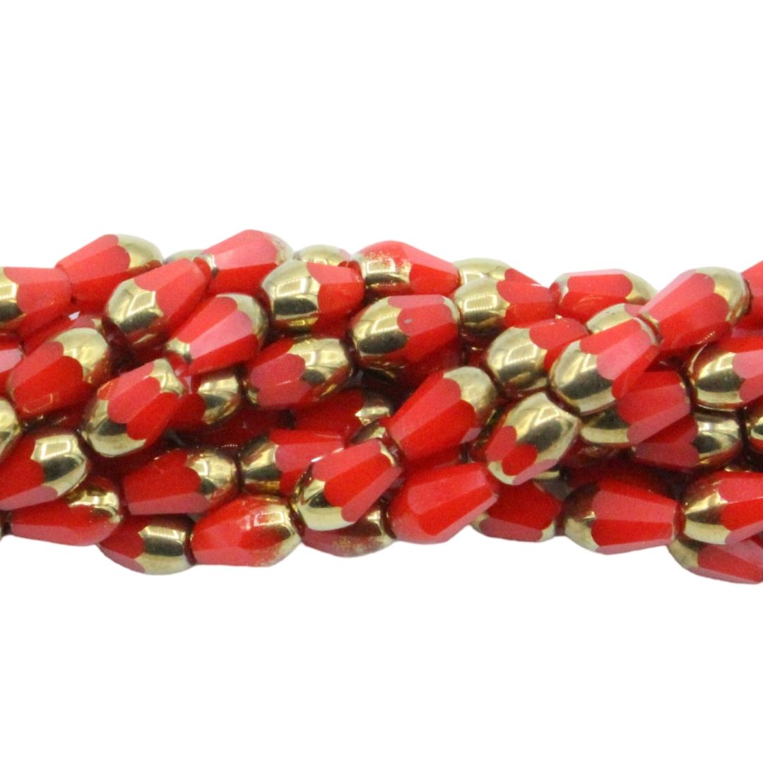 Faceted Drop Bead – 7mm – 33cm Strand – Lt Siam / Gold.