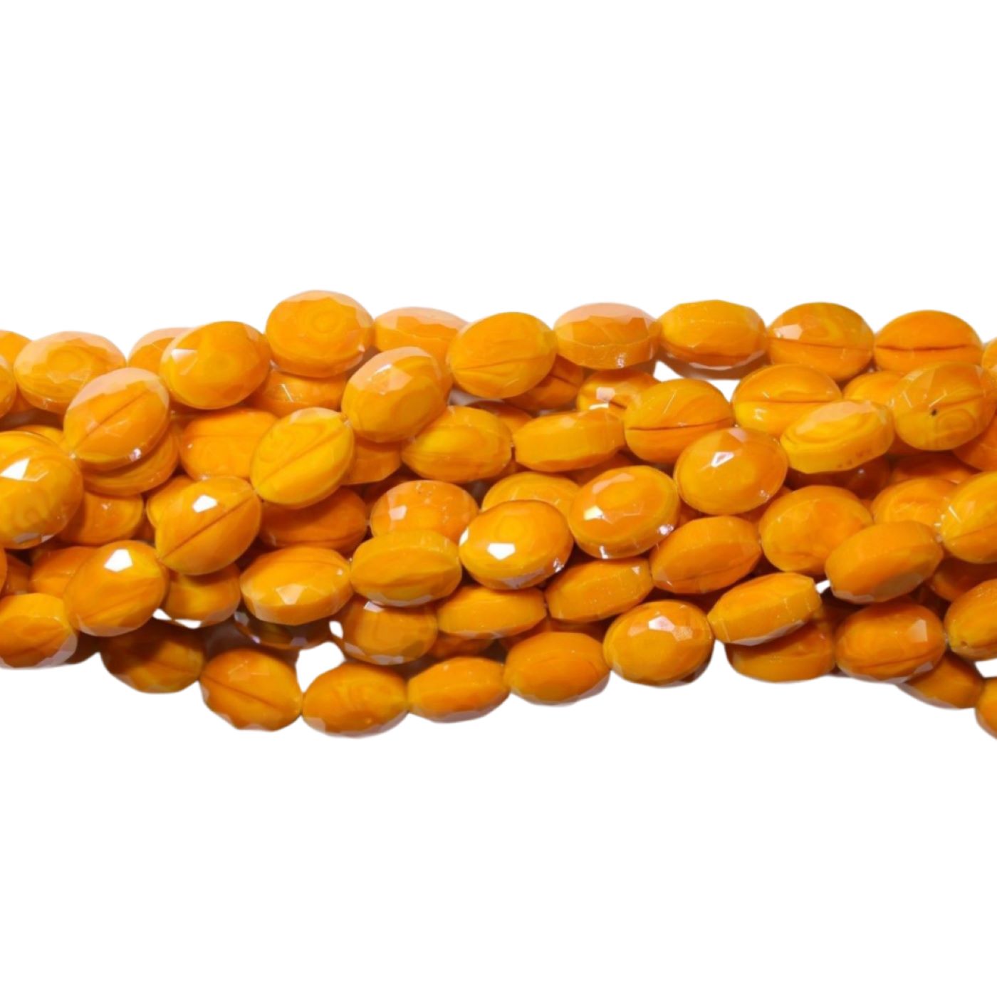 Faceted Oval – 12mm – Opaque Orange – 36cm Strand. 12 x 9mm bead size. Please contact us to purchase individual pieces.