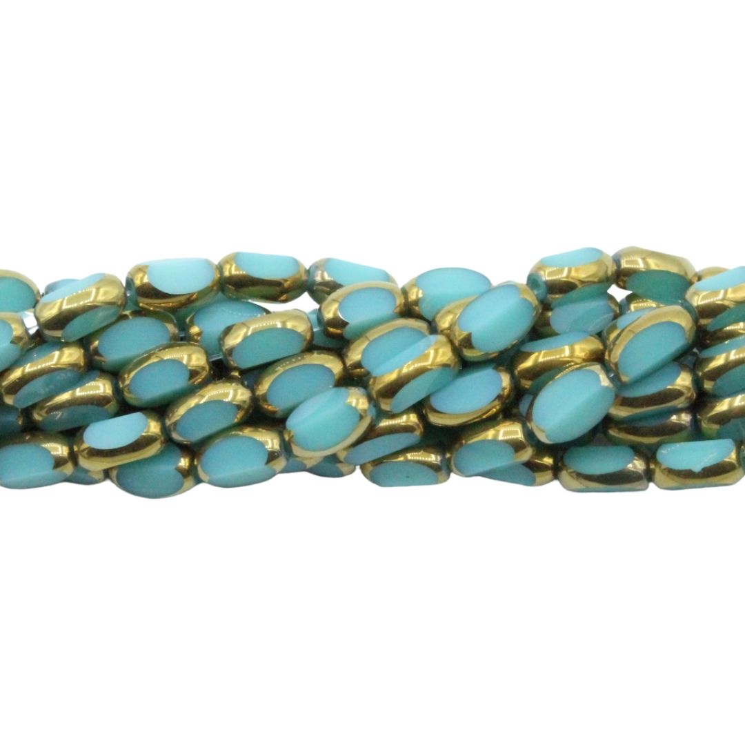 Faceted Oval Bead – 7mm – 34cm Strand – Pacific Opal / Gold.