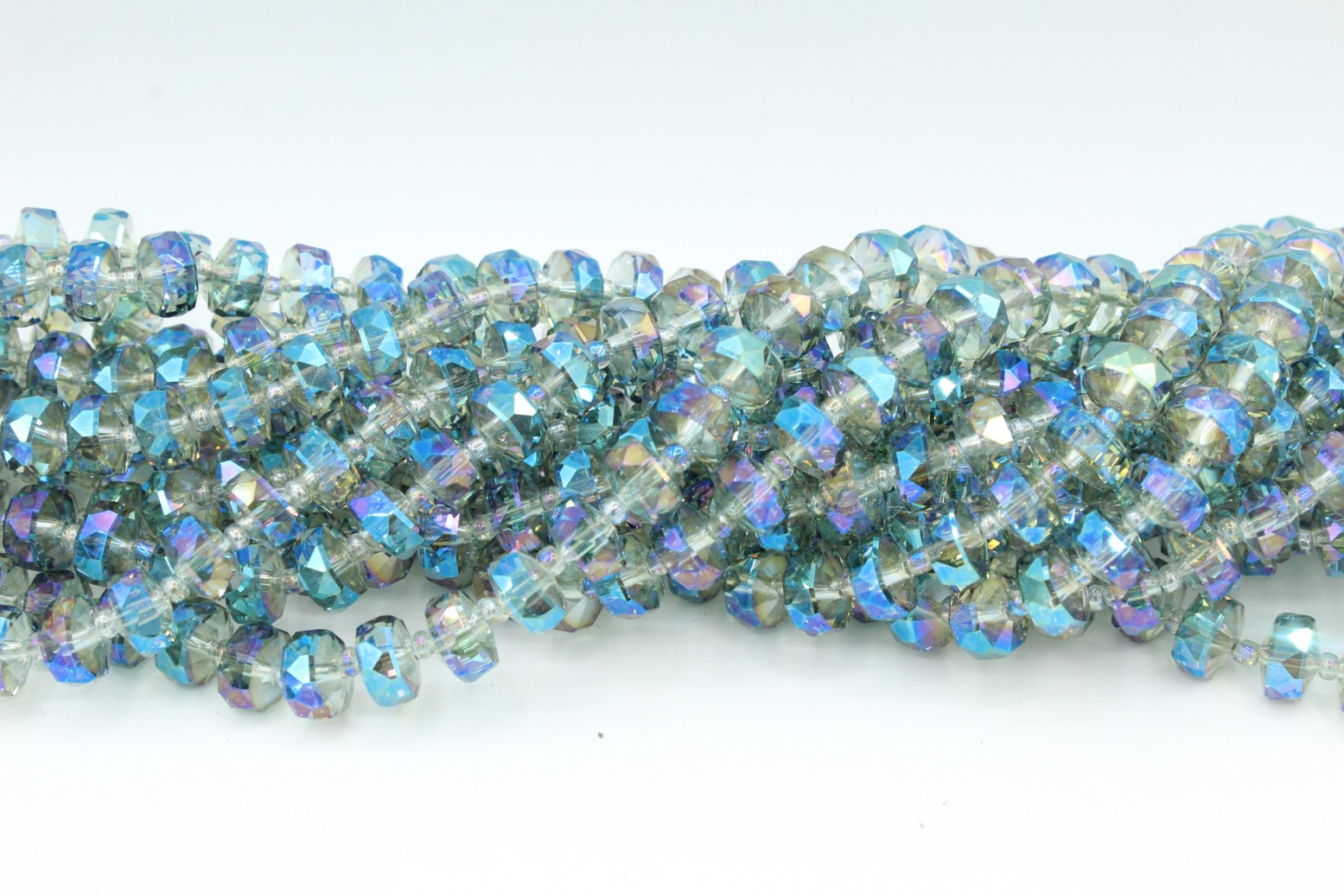 Faceted Spacer – 10mm – 62cm Strand – Irri Green. 10 x 6mm Bead Size. Glass bead.