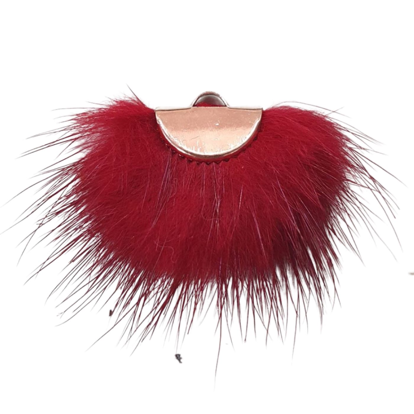 Fan – Marabou – 40 x 20mm – Burgundy. Gold coloured mount.