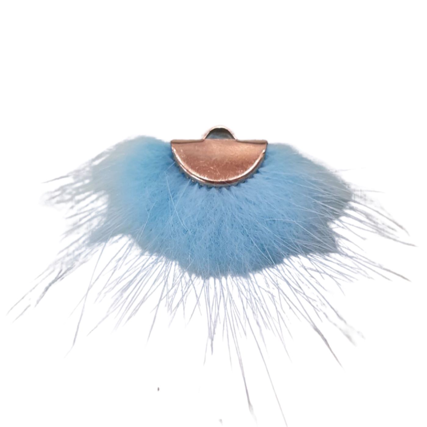 Fan – Marabou – 40 x 20mm – Light Blue. Gold coloured mount.