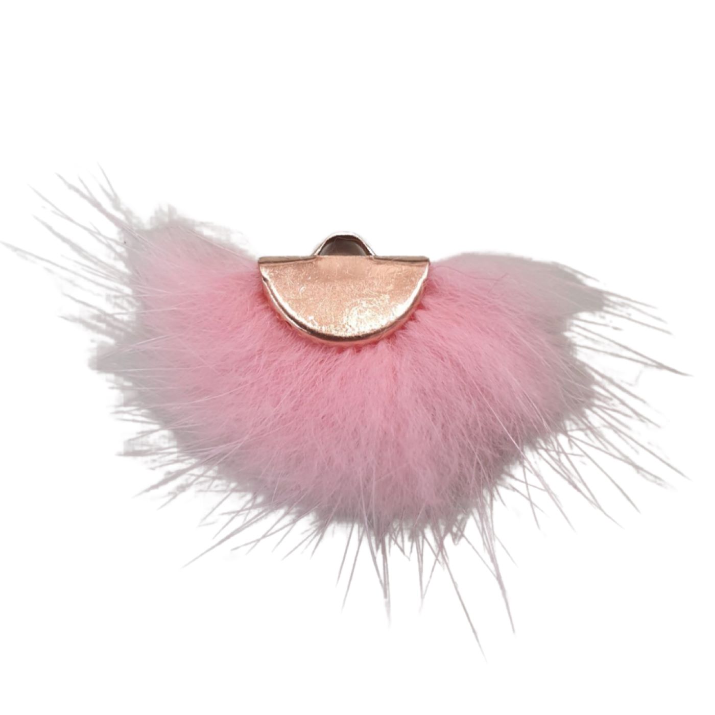 Fan – Marabou – 40 x 20mm – Pink. Gold coloured mount.