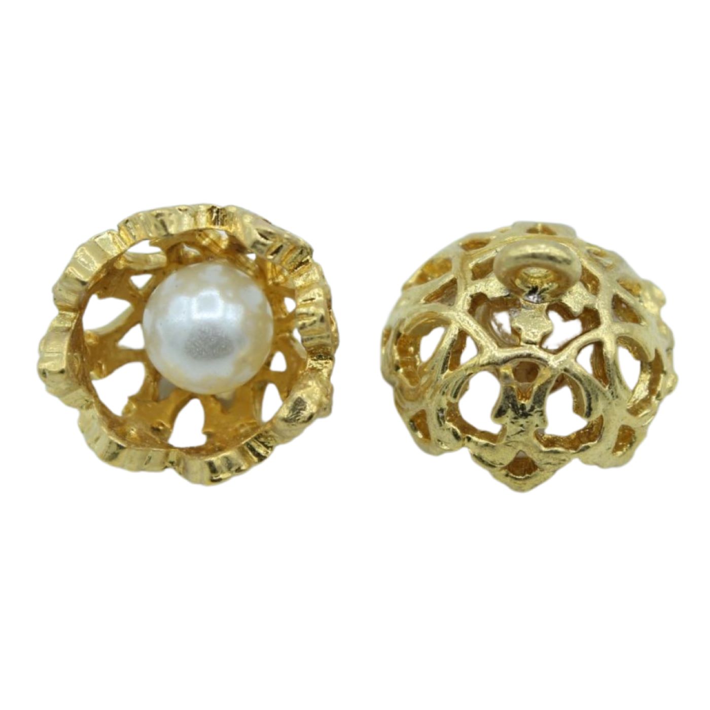 Filigree Cup / Pearl – 16mm – Gold. Metal. Good quality.