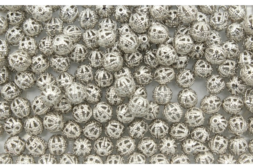 Filigree Round – 6mm – Antique Silver. Metal Bead. Plated.
