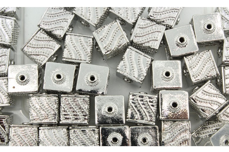 Filigree Square – 10mm – Antique Silver. Quality product. Metal Bead. Plated.